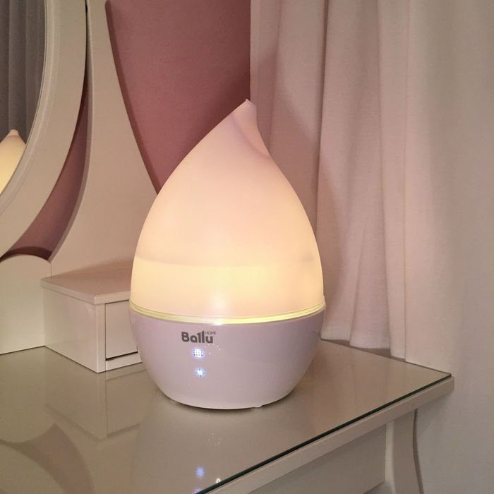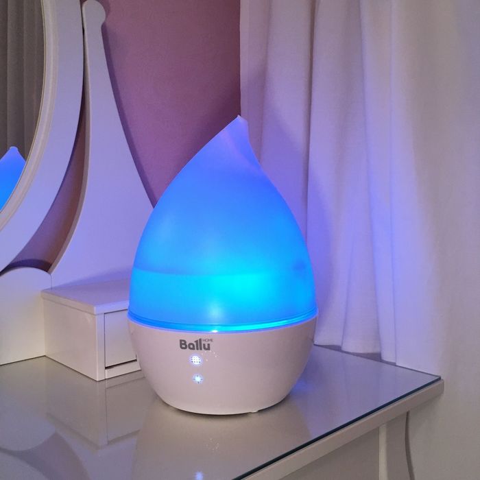При помощи ультразвукового увлажнителя модели Ballu (Баллу) UHB-190 Вы можете быстро корректировать уровень влажности воздуха в Вашем доме. Корпус этого прибора выполнен в форме капли, что делает его интересным аксессуаром в интерьере помещения. Встроенная подсветка позволяет использовать этот увлажнитель как ночник, при этом Вы можете выбрать любой из доступных семи цвет свечения корпуса прибора.