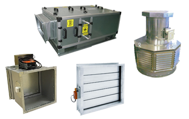 Описываются типовые элементы вентиляционных систем: вентиляторы, диффузоры, шумоглушители, воздуховоды, калориферы, рекуператоры и т. п.